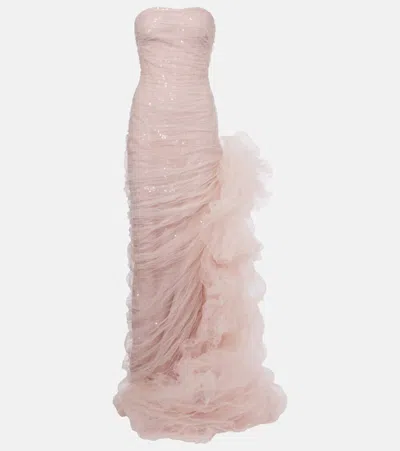 Marisol Embroidered Pleated Taffeta Gown In Red