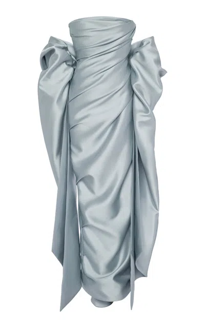 Marisol Embroidered Pleated Taffeta Gown In Blue