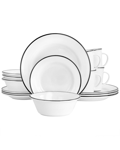 Black Rimmed Fine Ceramic 16pc Dinnerware Set In White