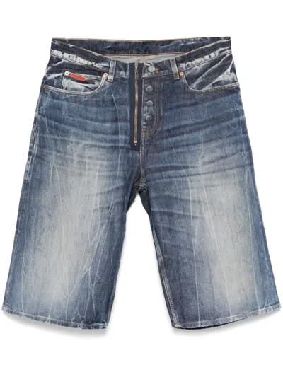 Acid Wash Denim Bermuda Shorts In Blue