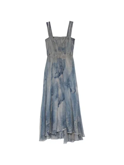 Tie-dye Pleated Maxi Dress In Blue