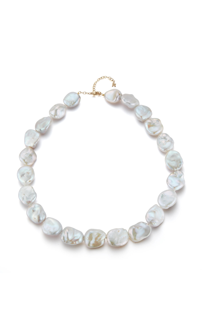 14k Yellow Gold Baroque Pearl Necklace In White