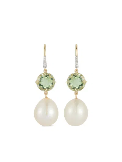 14k Yellow Gold Pearl And Topaz Drop Earrings
