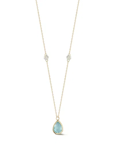 14k Yellow Gold Topaz Riviera Necklace In Blue