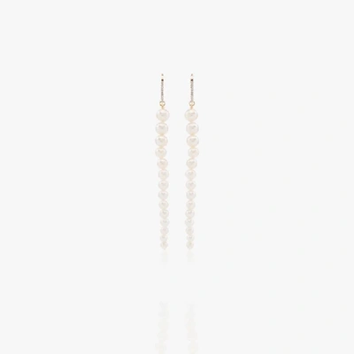 14kt Gold Pearl And Diamond Drop Earrings In White Yellow Gold