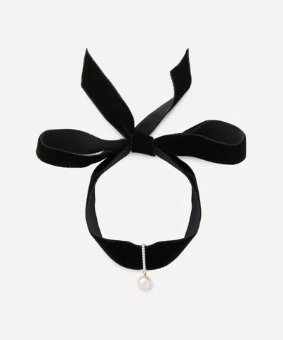 14ct Gold Pearl And Diamond Velvet Choker In Black