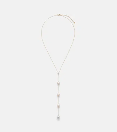 14kt Yellow Gold C Pearl And Diamond Necklace In Metallic