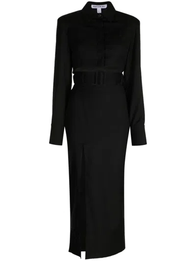 Cut Out-detail Belted Wool Dress In Black