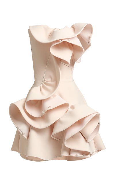 Atone Sculpted Mini Dress In Pure Cream Pearls