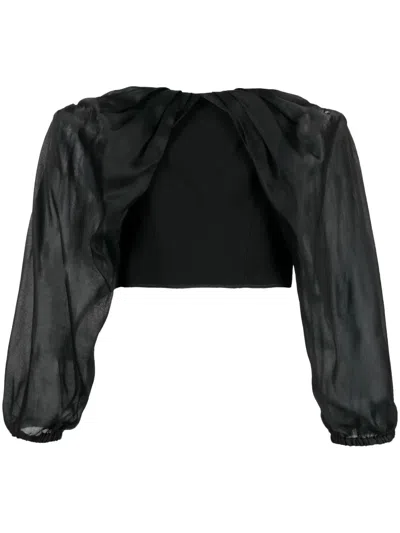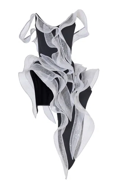 Resolute Asymmetric Ruffled Crepe Peplum Top In Black