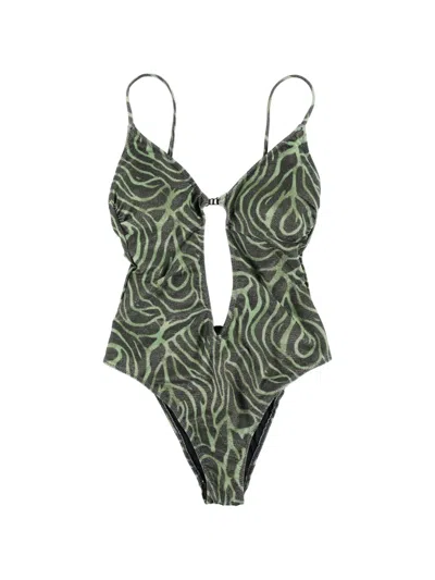 Lilly Zebra-pattern Cut-out Swimsuit In Green