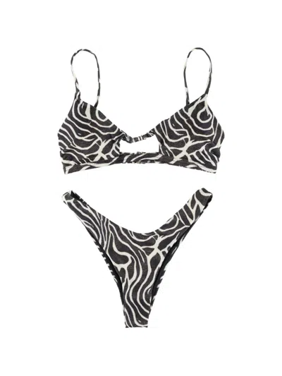 Lilly Zebra-pattern Cut-out Swimsuit In Black