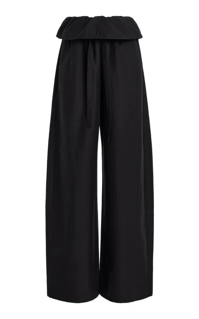 Exclusive Gathered-waist Cotton-silk Trousers In Black