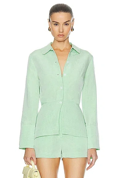 Blouson Long Sleeve Blouse In Cadet Blue Tencel