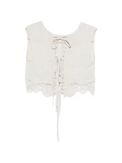 Lace Tie Top In Neutral