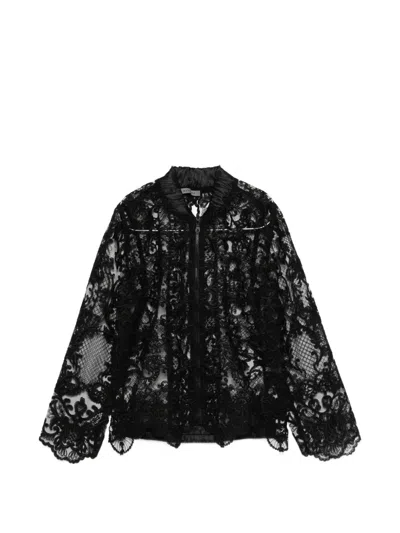 Lace Zip-up Jacket In Black