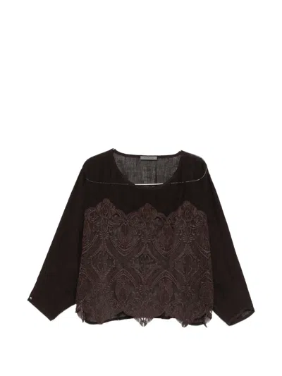 Laced Blouse In Brown