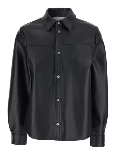 Black Jacket With Shirt Collar And Button Front Closure In Fabric