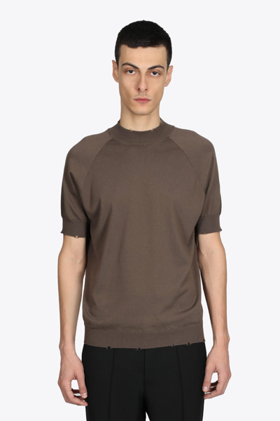 Maglia Collo Lupetto Brown Cotton Knit Mockneck T-shirt In Marrone
