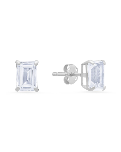 Maxcolor Silver 2.90 Ct. Tw. Lab-grown Emerald Dangle Earrings In White