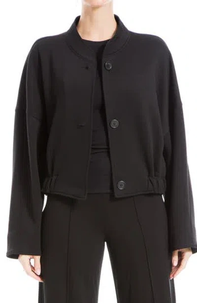 Brushed Knit Cropped Bomber Jacket In Black