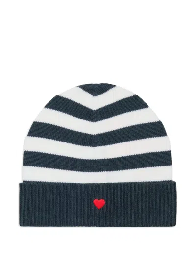 Kids' Heart-embroidered Stripe-print Wool Beanie In 黄色