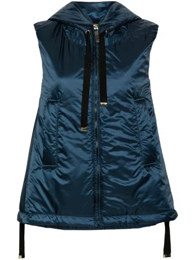 Padded Vest With Hood In Waterproof Canvas In Blue