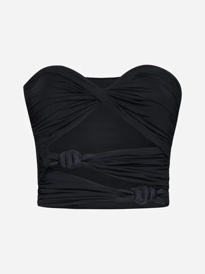 Noriega Strapless Twisted Draped Stretch-jersey Bandeau And Skirt Set In Brown