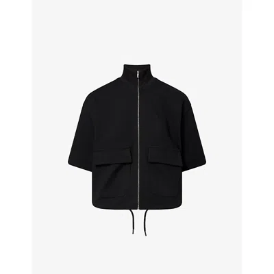 And Em Womens Black Luxe Travel Layering Short-sleeves Stretch-woven Jacket