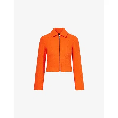 And Em Womens Vivid Orange Bouclé Cropped Wool-blend Jacket
