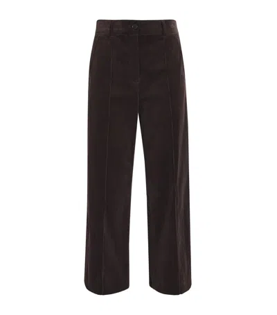 Cotton Corduroy Straight Cropped Trousers In Brown
