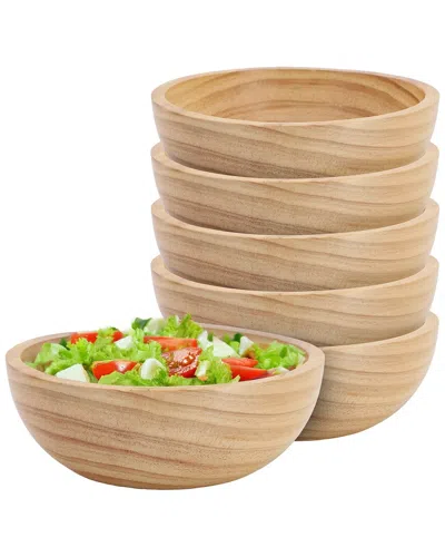 6 Piece 7 Inch Pine Wood Bowl Set In Brown