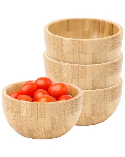 4 Piece 4.75 Inch Wood Salad Bowl Set In Brown