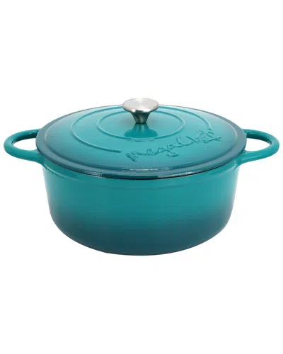 6.35qt Teal Round Enameled Cast Iron Dutch Oven In Blue