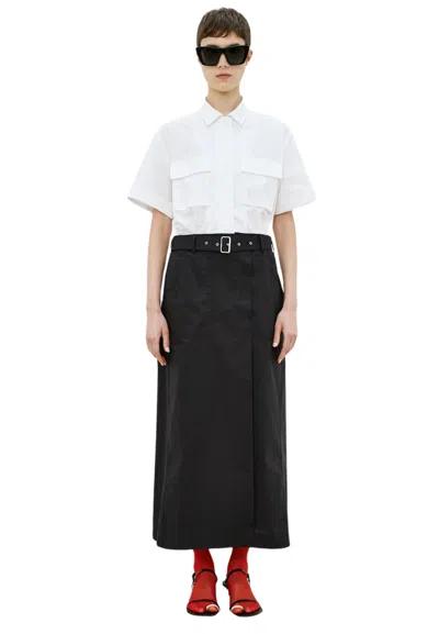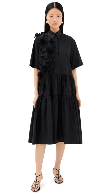 Short Sleeve Midi Shirt Dress With Flowers Nero