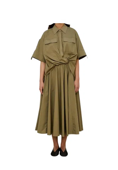 Poplin Dress With Mini Pleats At Waist Oyster