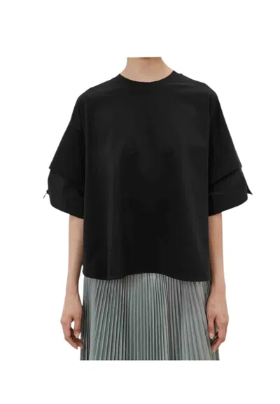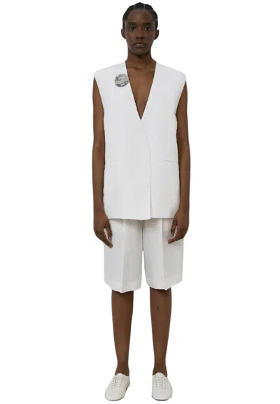 T-shirt Half Sleeve Over Woman With Fabric Applications In White
