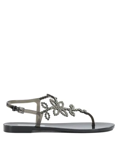 Crystal-embellished Floral-detail Sandals In Black