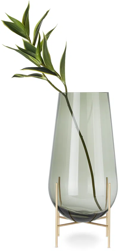 Smoke Glass & Brass Medium Échasse Vase In Smoke Glass / Brushe