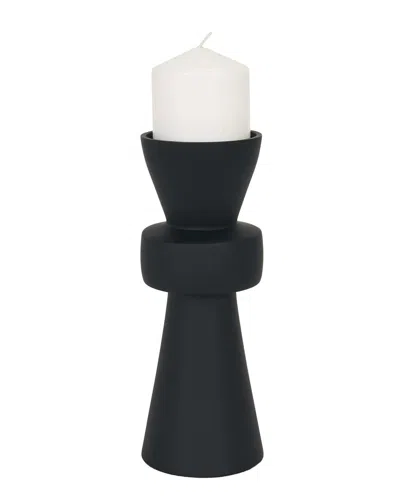 Odilia Small Smooth Matte Metal Geometric Pillar Candle Holder In Black