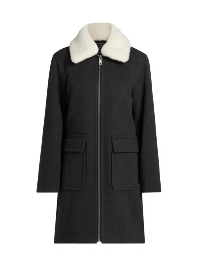 Women's Madison Faux Fur-collar Maxi Wool Coat In Gray
