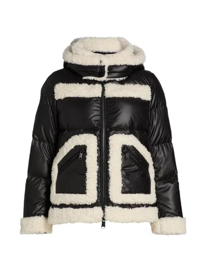 Women's Faux-shearling-trim Down Puffer Coat In Black