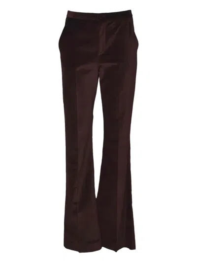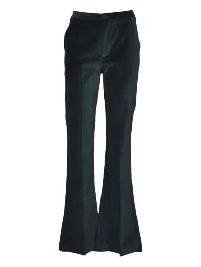 High-waisted Fitted Flared Trousers With Polished Finish In Green