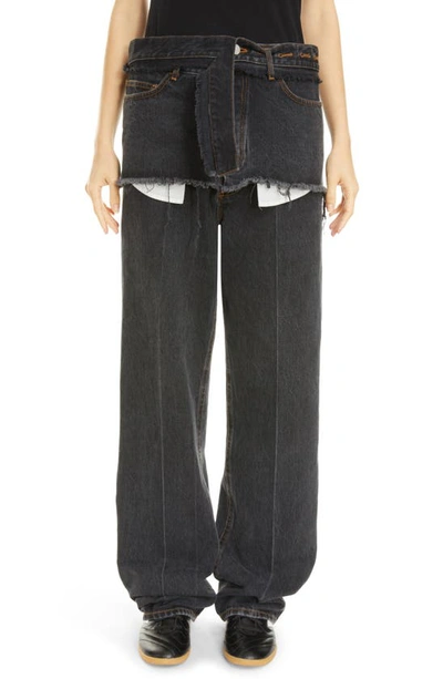 Wide Leg Jeans With Removable Deconstructed Overlay In Black