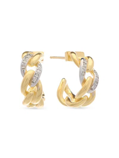 18k Over Silver 0.16 Ct. Tw. Diamond Hoops In Gold