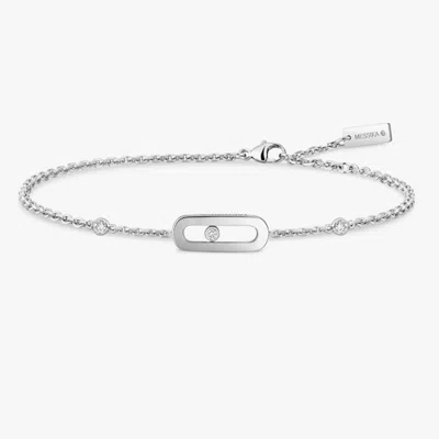 Move Uno 18k White Gold Diamond Bracelet In Silver