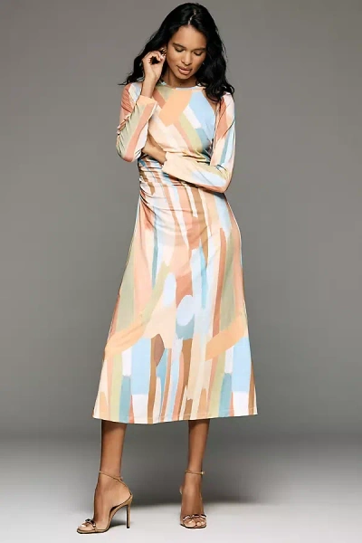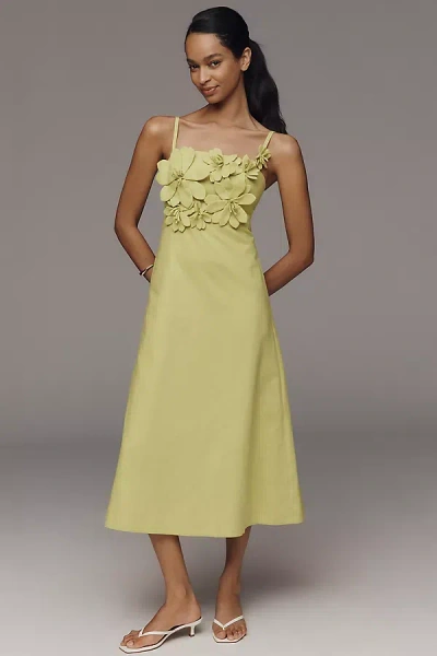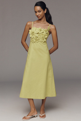 Scoop-neck Linen-blend Sleeveless Midi Dress In White