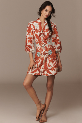 Breakfast Puff-sleeve Mini Dress In Multi