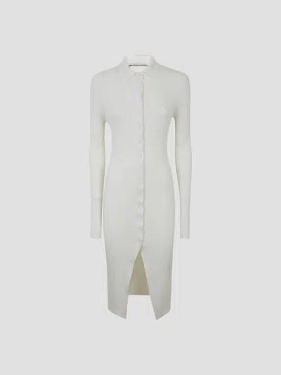 Elegant Long Sleeve Rib Silk Dress In White