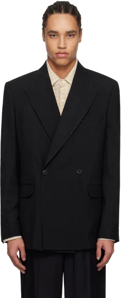 Black Double Breasted Blazer In Black Tropical Wool